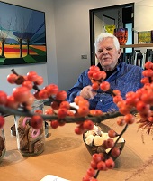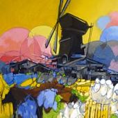 Vandaag zijn we afscheid wezen nemen van een aimabele kunstenaar waarmee we onze hele galerieperiode met veel plezier gewerkt hebben. Een man met een ongebreidelde fantasie en 'engelengeduld'. Elke compositie van zijn hand was weer een nieuwe verrassing.